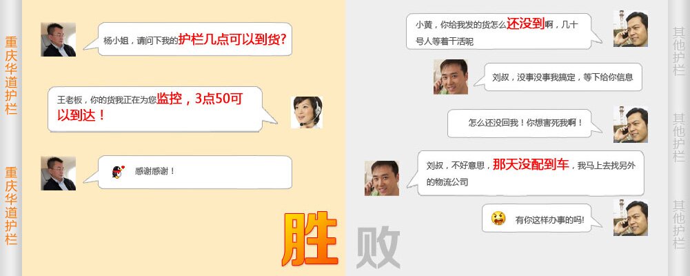 华道护栏始终以用户需要为发展之源泉,同时我们也坚信“诚信”是一个企业长期发展的基石,是企业文化的一个重要体现。企业只有带头做诚信的表率,维护企业信誉才能在激烈的市场竞争中立于不败之地.